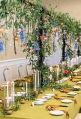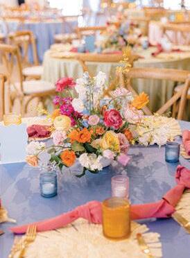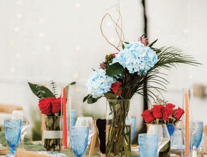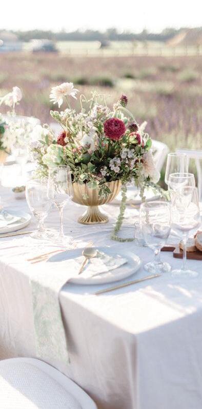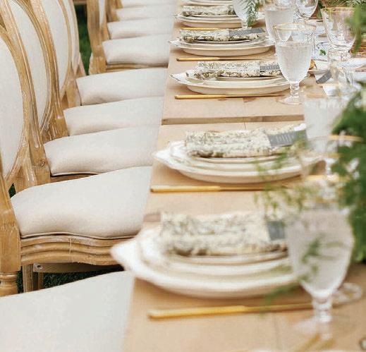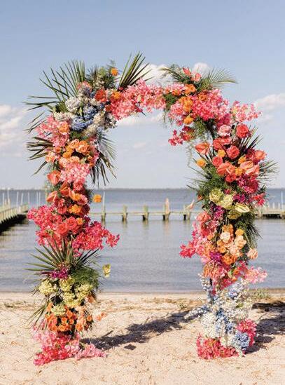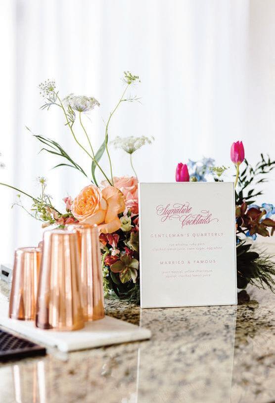 Bringonthecolor!Goforvibrantjeweltones andgardenvibeswithbrassygold,andrattan fortexture.Don’tbeafraidtomixandmatch. Wowyourguestswithahanginggardenfloralinstallationovertablesorthedancefloor, andbringinunexpectedelementslikeacold brewmartinibar!