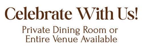 •Weddings-EngagementsHolidayParties-FundraisersBaby/BridalShowersBusinessMeetingsRehearsalDinners