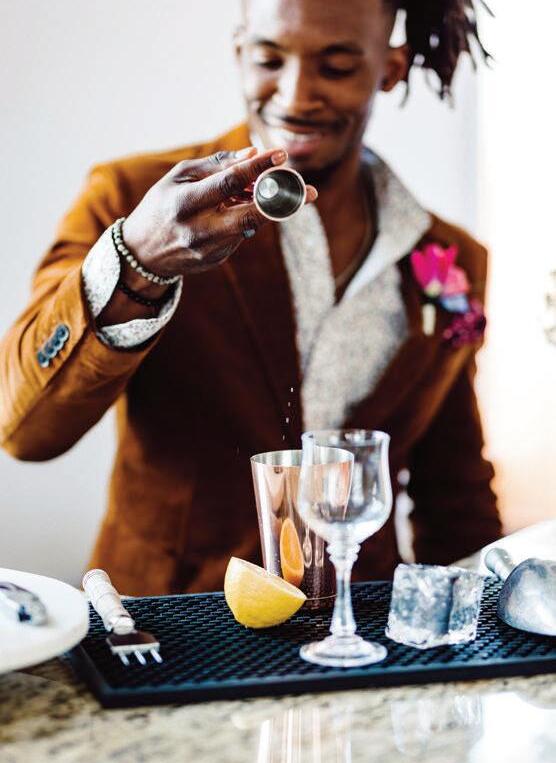 “Idon’twannabesomeonethatpeople justforget.IwantpeopletoknowI’mhereto takecareofyou.…Iwannabeabletoengage withpeople,makesuretheygetthefullexperiencetheywouldgetataregularbar,”hesaid. “If somebodyhiresme,they’rehiringmefor myphilosophy.…I’mnottheretobeaghost.” Hisphilosophyofbartendinggoesbeyondcoolequipmentorpouringskills.