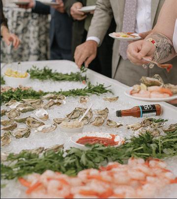Fromphotoboothsandcornholeto champagnetowersandlivemusic,thisisa spacetogetcreativeandsetthevibeforthe restoftheevent.Bringontheappetizersand signaturedrinks,butmakeitmemorable.