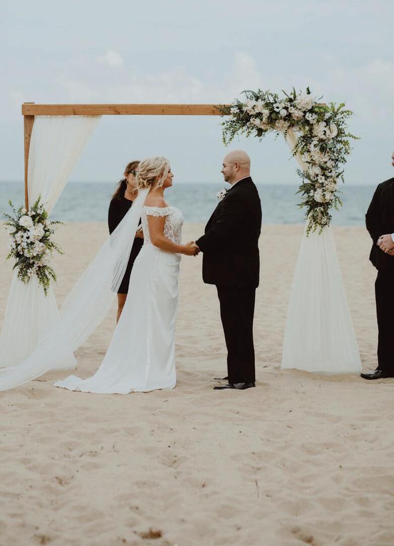 Officiant BobMiller |Venue SeedandSaplingWeddingsandEvents| Catering TasteEvents| Cake Bride’sFather Photographer DonaJungPhotography |Flowers BayStreetBlooms |Signage CopyCentralofOceanPines Entertainment BreathofFreshAir |Hair Tiffersons |Dress CherieSustainableBridal Suit BrooksBrothers |Shoes BetseyJohnson |WeddingBands Veragio| Invitations Zola