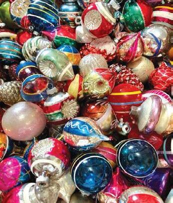 AcollectionofKitty’svintageblowmolds, fromherpersonalcollection,gracestheinside ofthefireplace.Theseplasticsnowmenwere popularinthe‘60sanddifficulttofindtoday. n SusanLyons