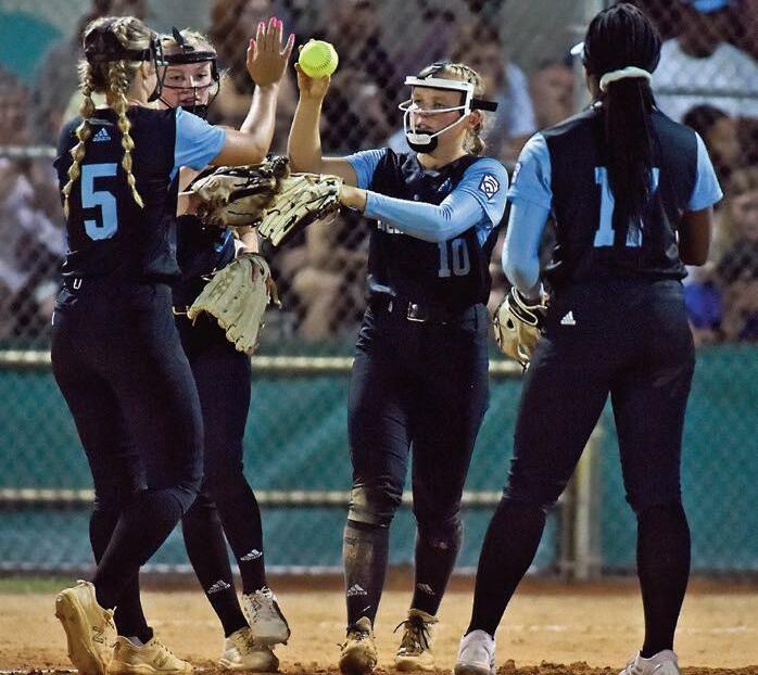 SpecialtotheCoastalPoint•ButchComegys Clockwisefromfarleft:Southeastcenterfielder McKennaRobbinsisjustoutofreachofadeepfly ballingame5againstCentral;Centralleftfielder LizWaymiredivesintothefoullinefenceattemptingtocatchashallowflyball;Southeastbatter MelanieMorenoreceivesahighfivefromherfirst basecoachafterblastingasolohomerun;Central pitcherMcKinleyLowe,middle,celebrateswith teammatesKaitlynRobinson,left,andJaylynn Sarnes aftertheir6-4win;CentralbaserunnerAva Womblesdivessafelybacktosecondbase.