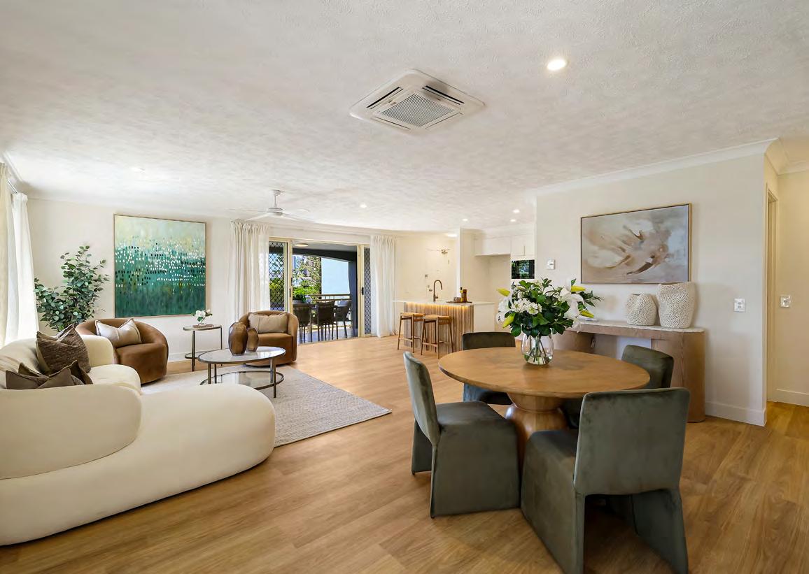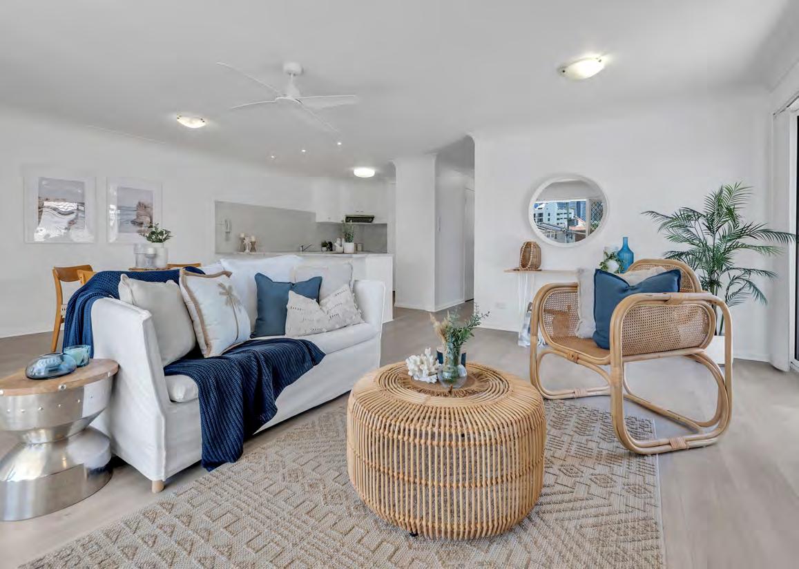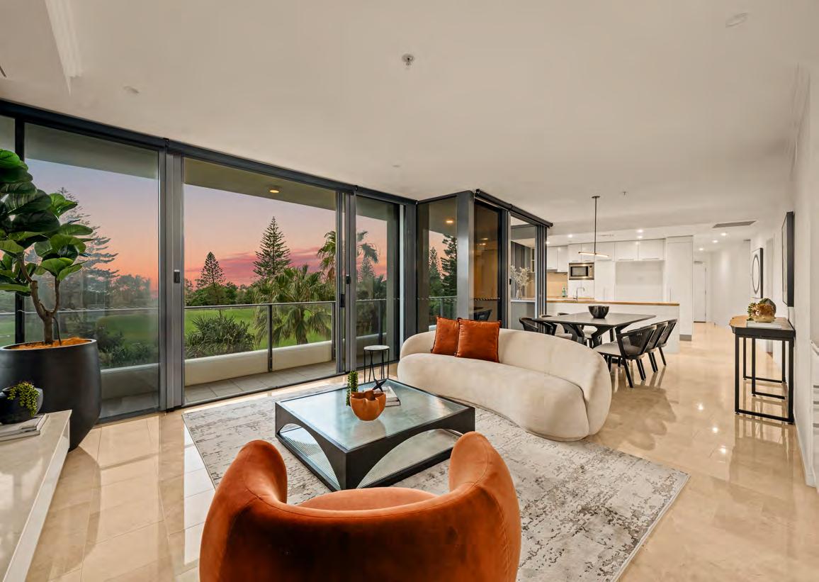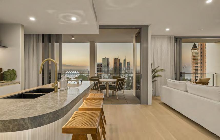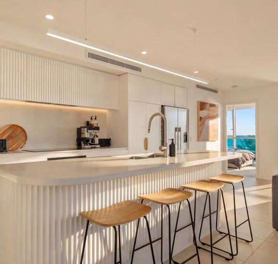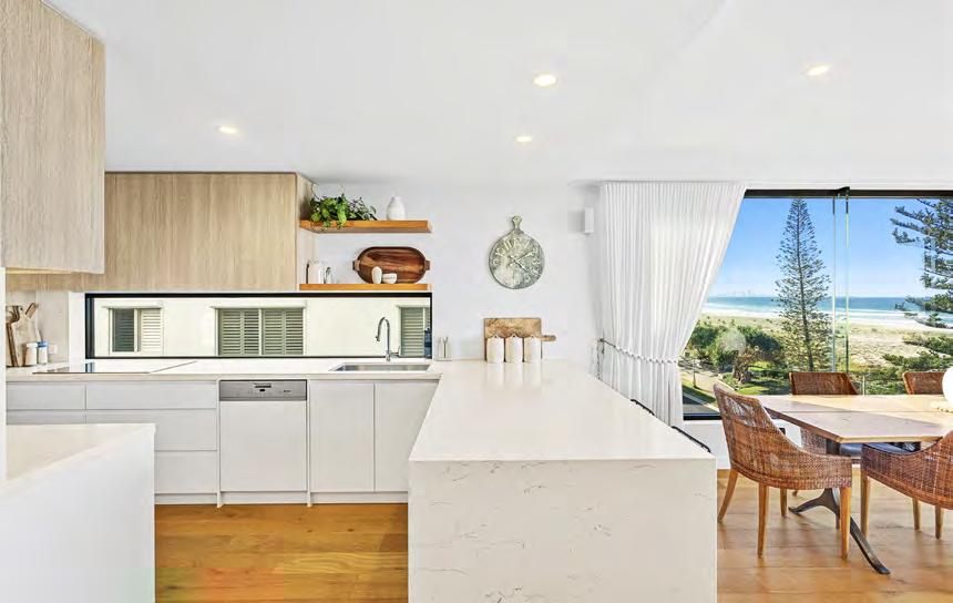 Luxury, lifestyle and location unite seamlessly by the sea in this exquisite beach house apartment within Rockpool Rainbow Bay. A boutique, residential-only development by awardwinning Joe Adsett Architects, it rests directly opposite the iconic Norfolk Pines that line Greenmount Hill, with the ocean just footsteps beyond.