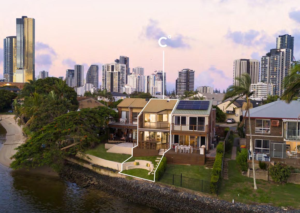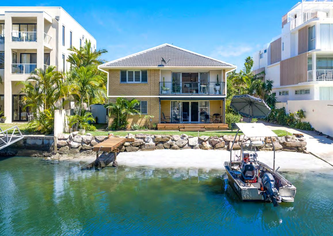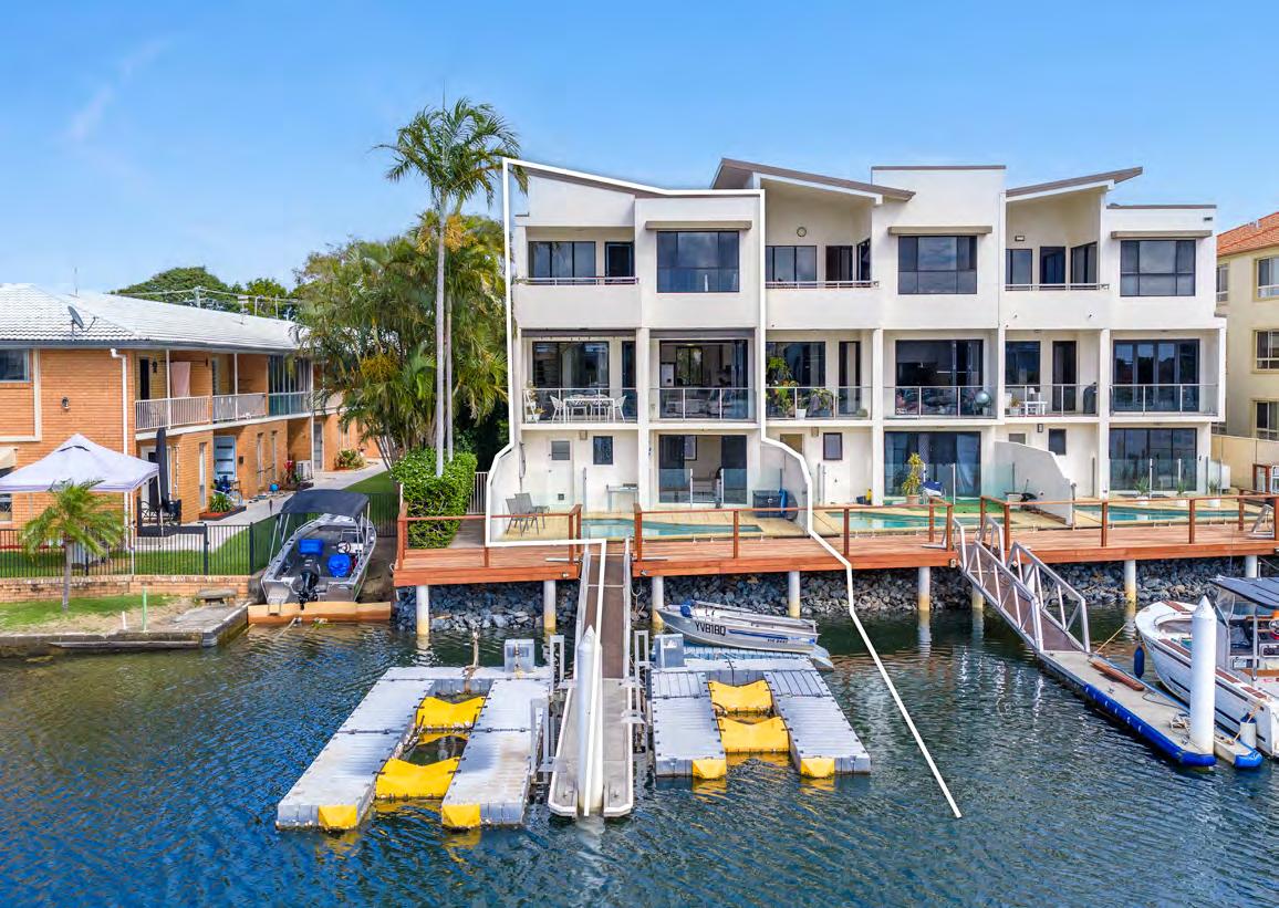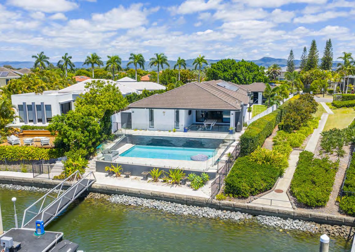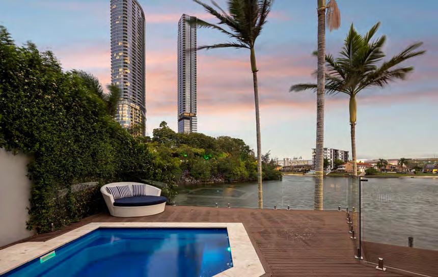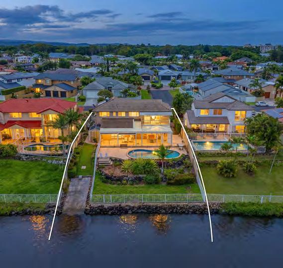 Positioned within a private waterfront setting, this extraordinary estate spans animpressive 1,808m² across two individual titles, delivering a rare opportunity tosecure a substantial landholding with resort-style living and future flexibility.Hidden behind lush tropical landscaping, the residence offers a sense of seclusionwhile remaining moments from the heart of the Gold Coast.