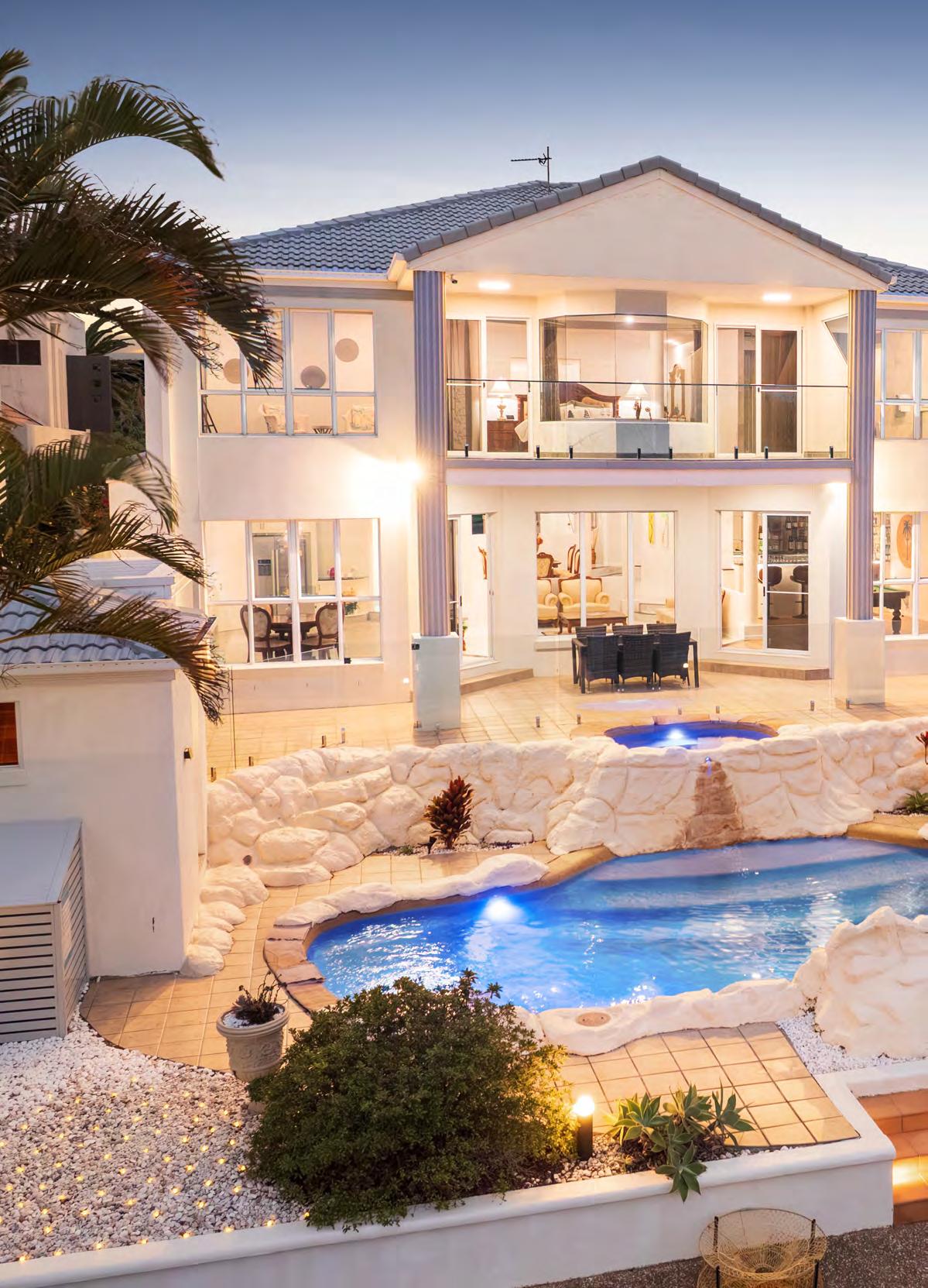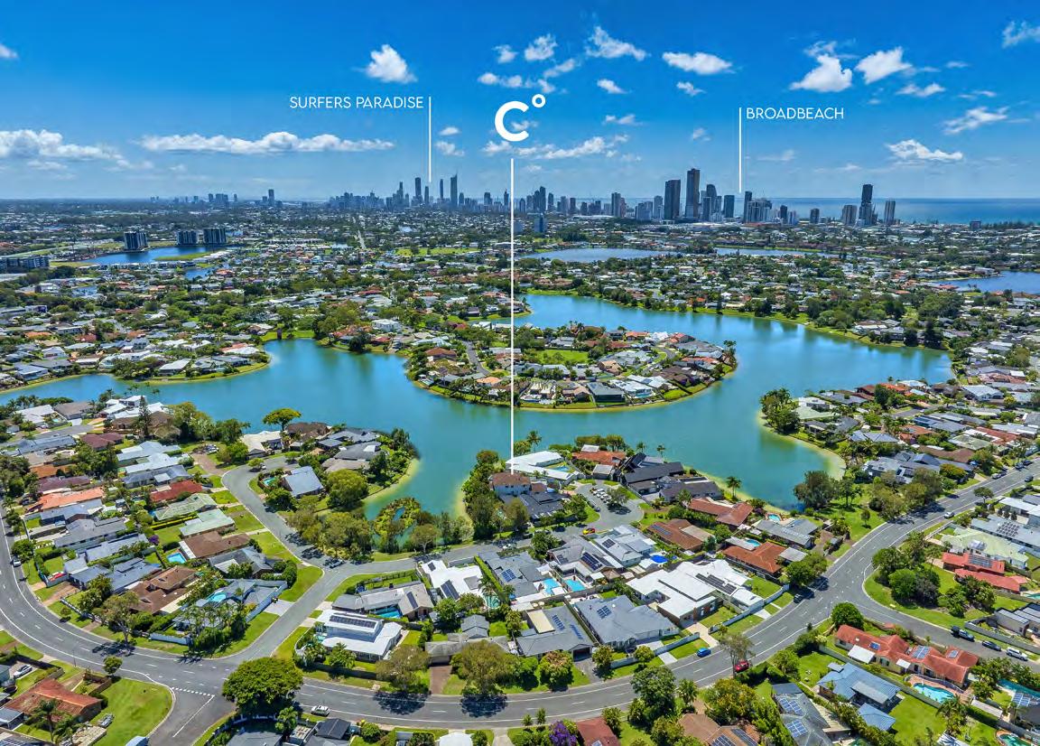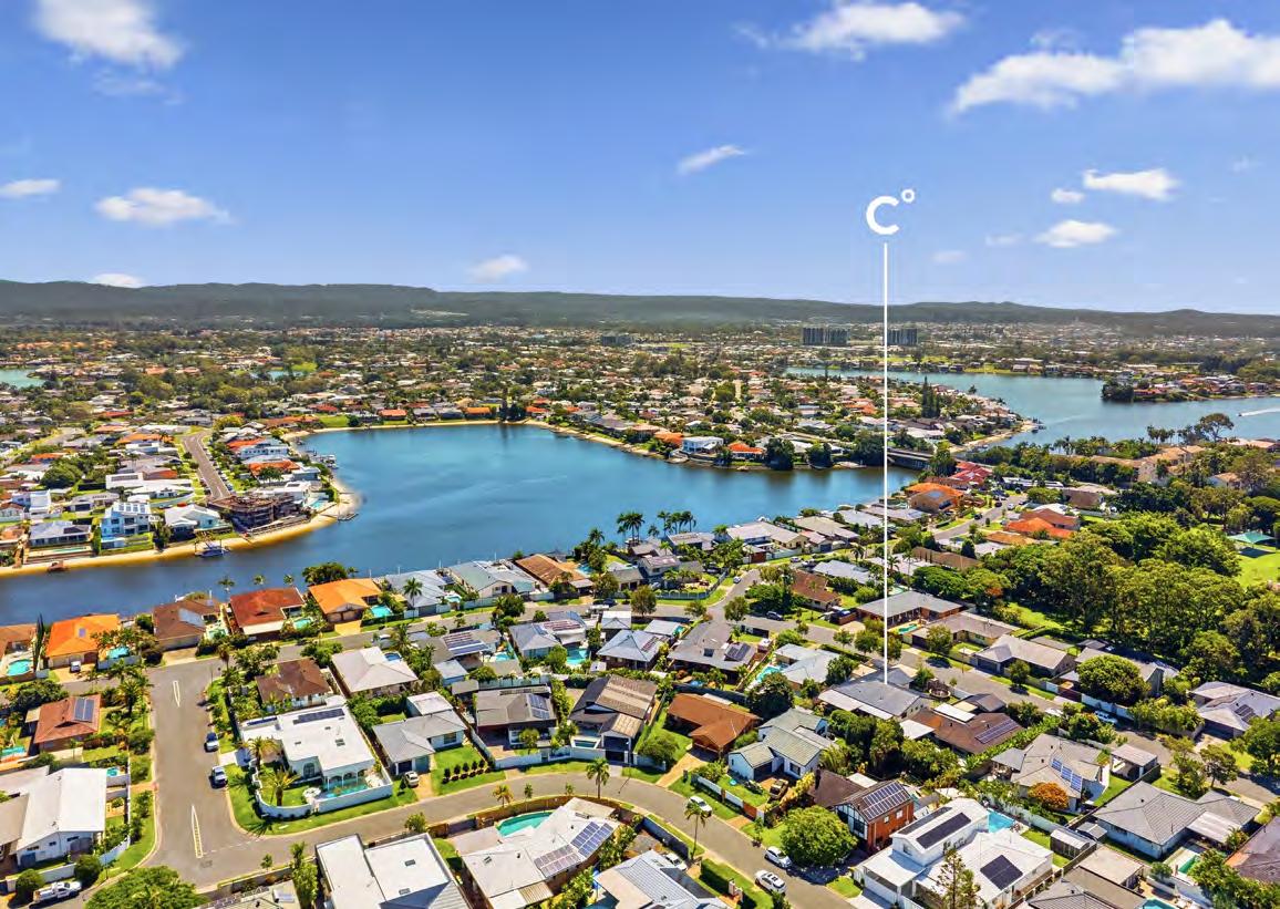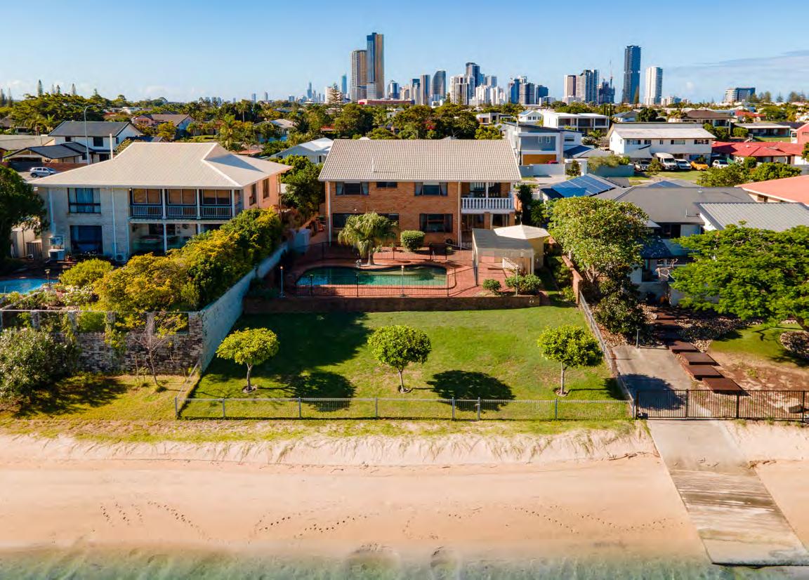 Positioned within a private waterfront setting, this extraordinary estate spans animpressive 1,808m² across two individual titles, delivering a rare opportunity tosecure a substantial landholding with resort-style living and future flexibility.Hidden behind lush tropical landscaping, the residence offers a sense of seclusionwhile remaining moments from the heart of the Gold Coast.