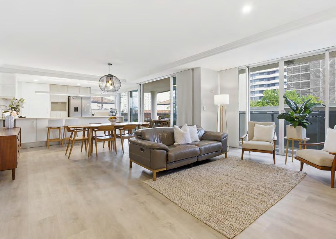 Positioned within the tightly-held 'Modena on Chevron', this spacious end-style apartment offers size, natural light and lifestyle in the heart of Chevron Island The well-designed open plan kitchen, living and dining area forms the central hub of the home, lfowing effortlessly to an expansive 11-metre wrap-around balcony that creates a seamless indoor and outdoor connection The kitchen features stone benchtops, gas cooking, quality appliances, and a breakfast bar