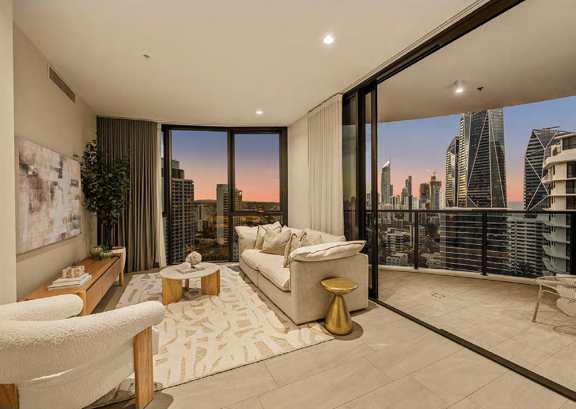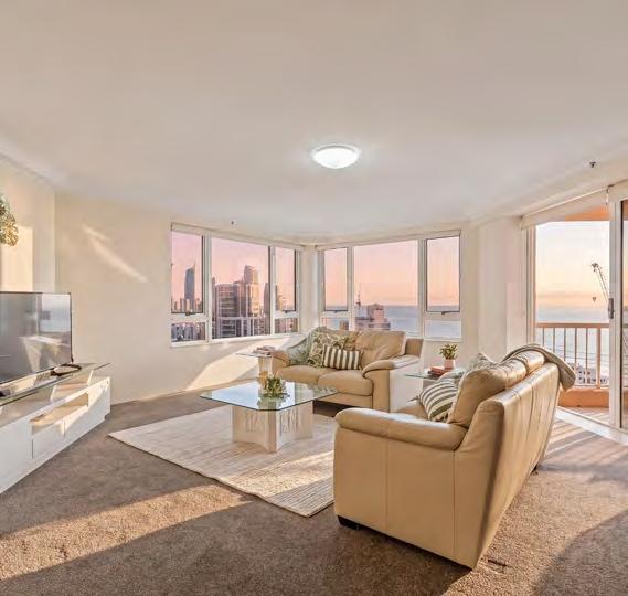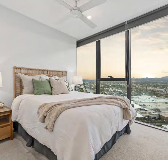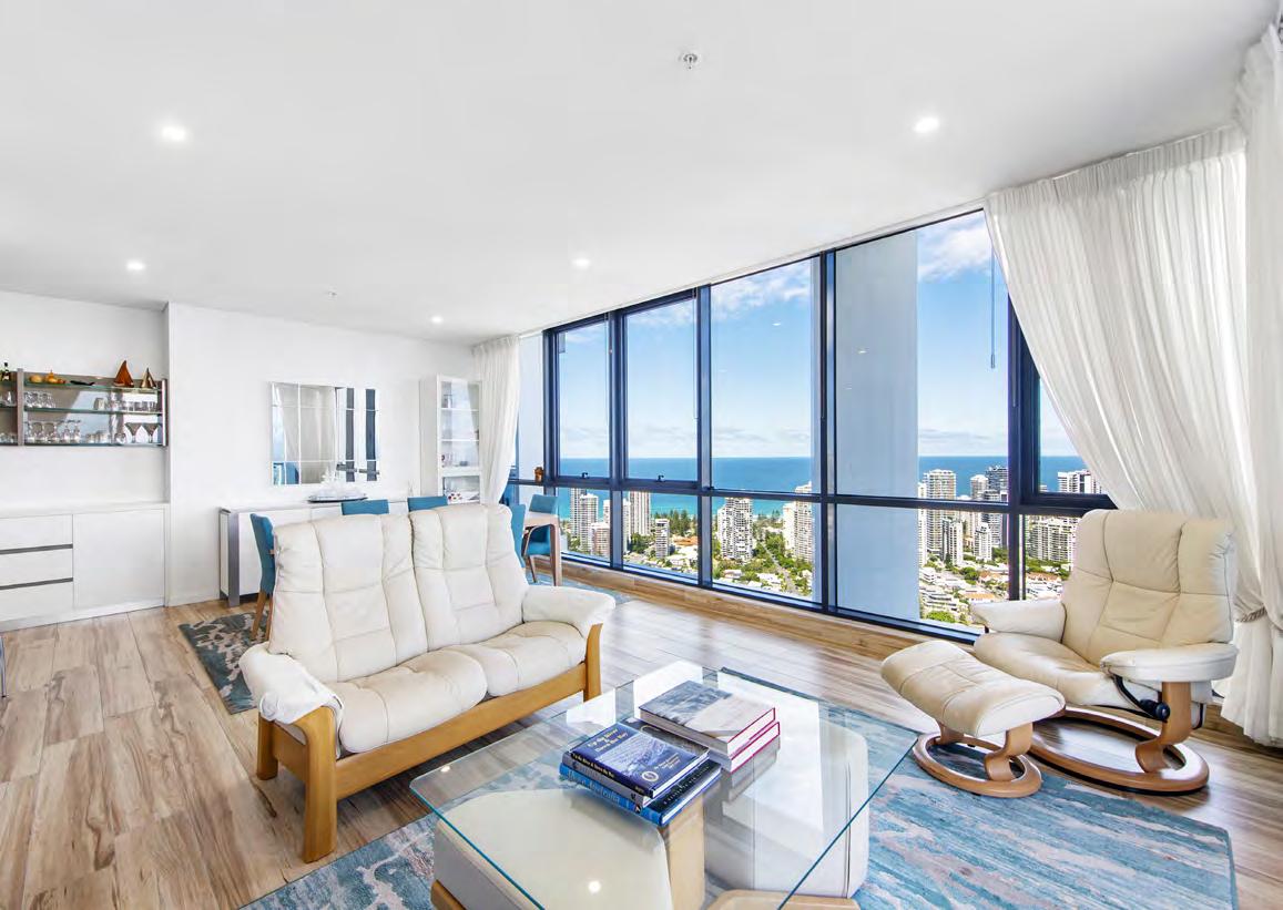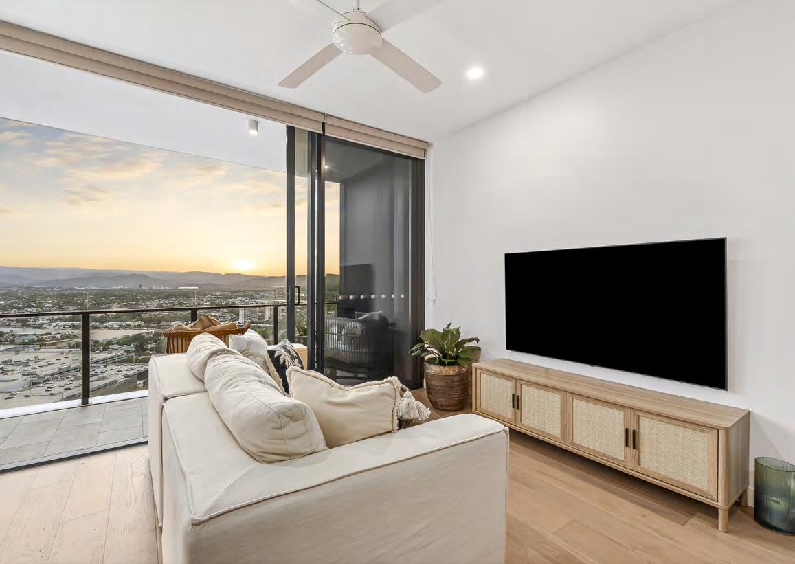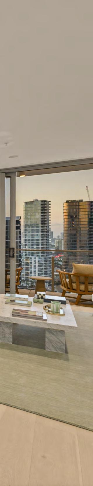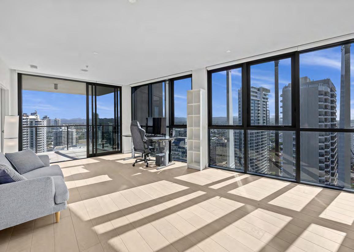 High above the heart of Broadbeach, on the 32nd lfoor of Qube Broadbeach, a tightly held opportunity quietly awaits From the moment you step inside, the view takes over Sweeping from the Paciifc Ocean across the Broadbeach coastline, skyline and through to the Gold Coast hinterland, the wrap around panorama delivers a constantly changing backdrop from sunrise glow to golden sunset and sparkling city lights