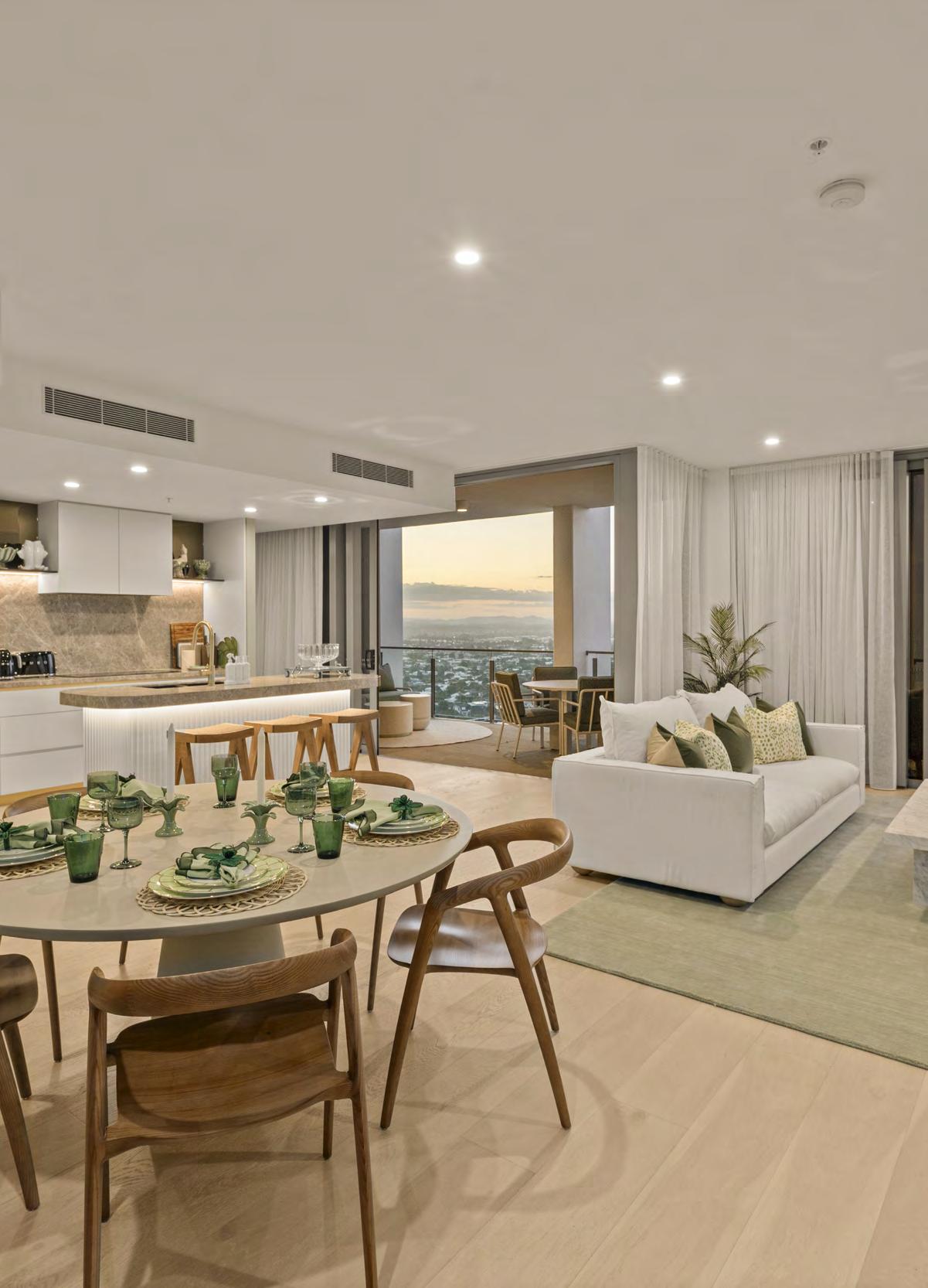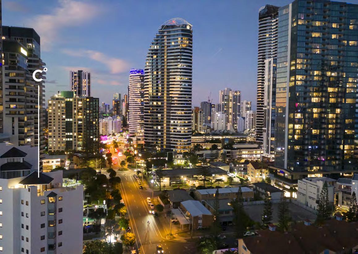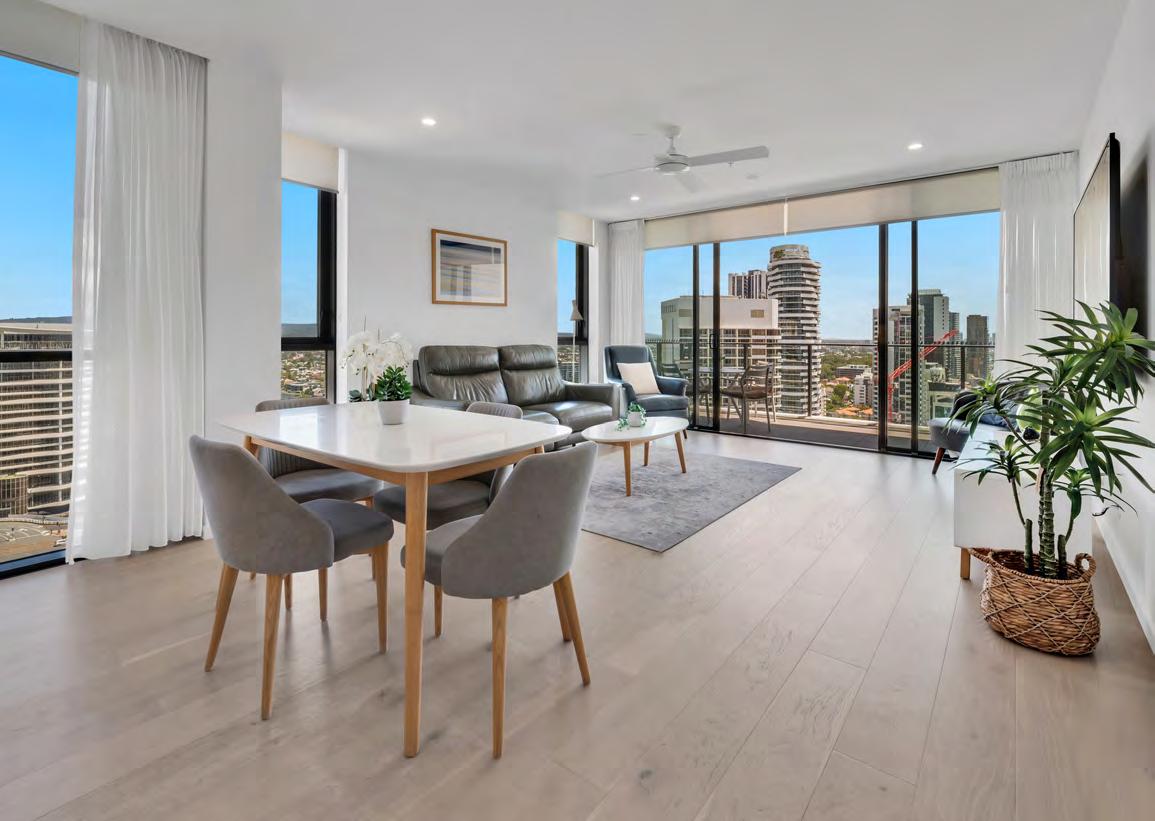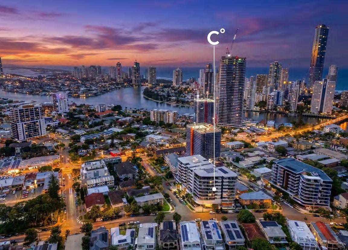 High above the heart of Broadbeach, on the 32nd lfoor of Qube Broadbeach, a tightly held opportunity quietly awaits From the moment you step inside, the view takes over Sweeping from the Paciifc Ocean across the Broadbeach coastline, skyline and through to the Gold Coast hinterland, the wrap around panorama delivers a constantly changing backdrop from sunrise glow to golden sunset and sparkling city lights