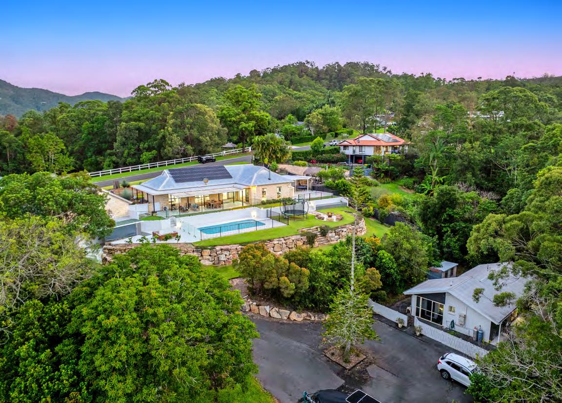 The Bianca Basile Team proudly present 119-125 Murray Grey Drive, Tamborine - a beautifully renovated Queenslander-style homestead set on approximately 5.4 acres of picturesque land, offering peaceful acreage living, self-suiffciency and modern comfort Surrounded by manicured gardens, mature fruit trees and two tranquil creeks, this private retreat captures the essence of the Tamborine lifestyle