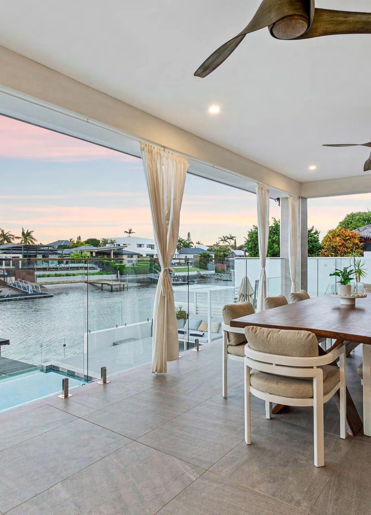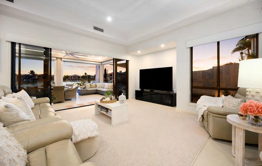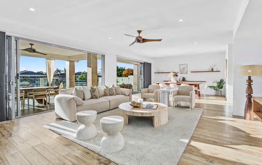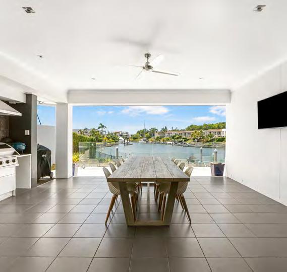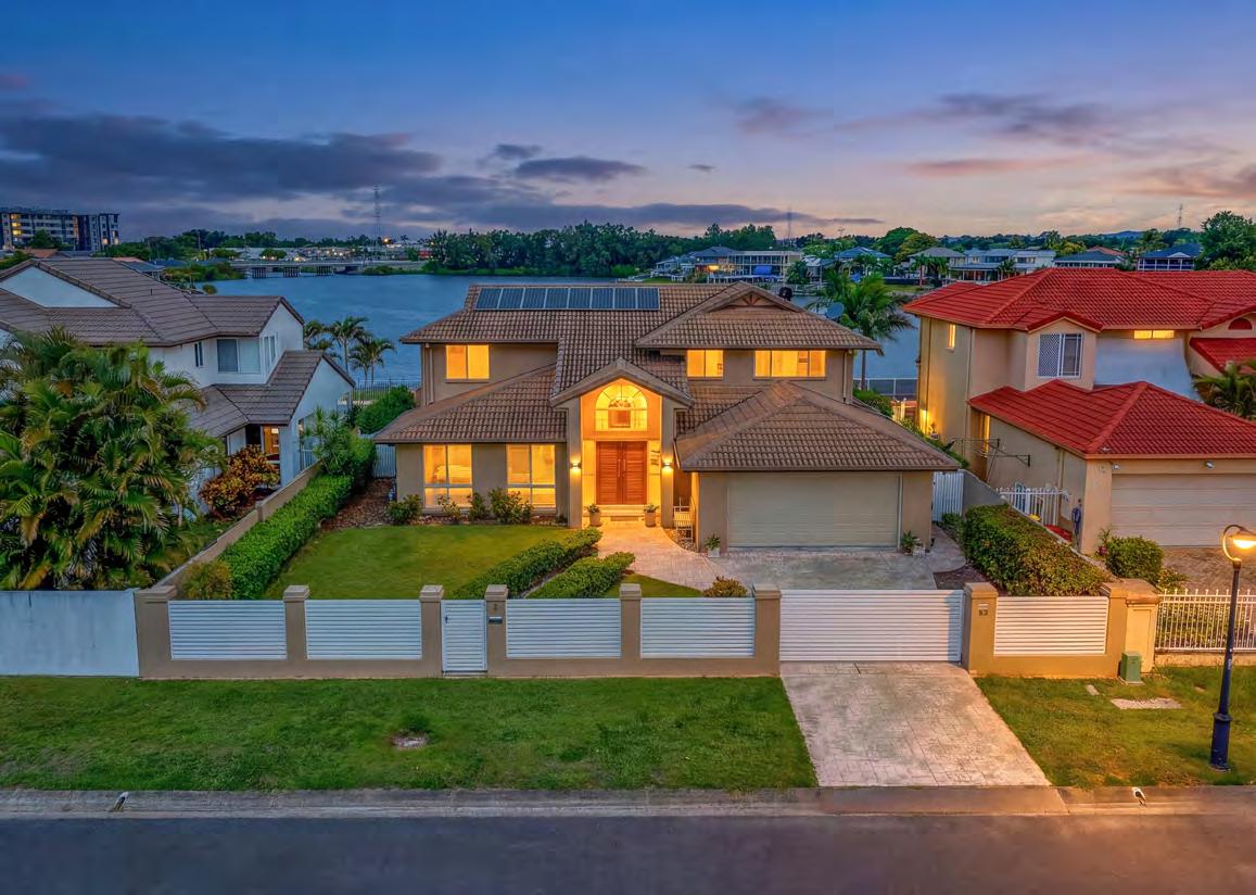 Framed by peaceful parkland to the front and wide canal waters to the rear, this impressive waterfront residence delivers a refined lifestyle within the prestigious Sovereign Islands enclave. Positioned on a generous 700m² allotment with an expansive water frontage, the home combines architectural scale, elegant finishes and effortless coastal living.