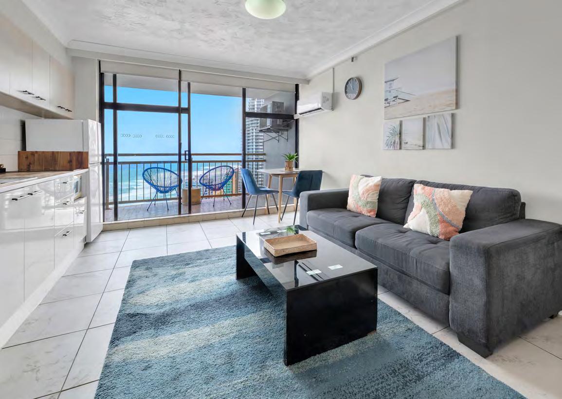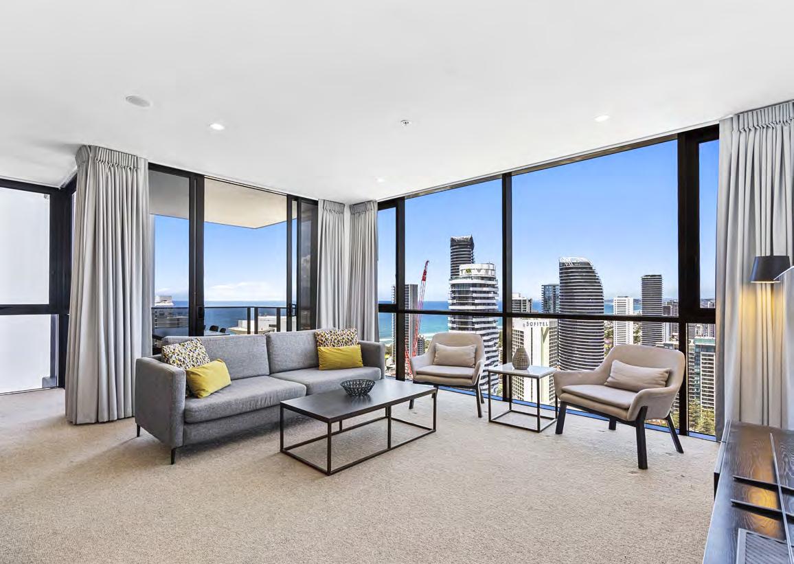 Surrounded by cosmopolitan restaurants, vibrant cafes and every shop imaginable, this contemporary 14th-lfoor apartment will be sold fully furnished and combines prime convenience with coastal allure, placing iconic Gold Coast beaches within 400 metres Nestled within the desirable 30-level 'Sierra Grand' complex, the property boasts spectacular views from its elevated position