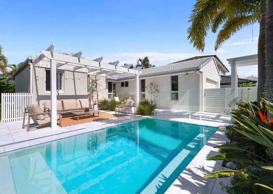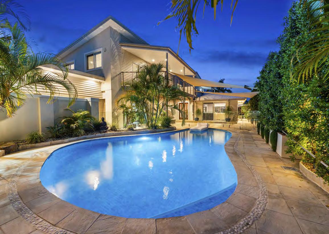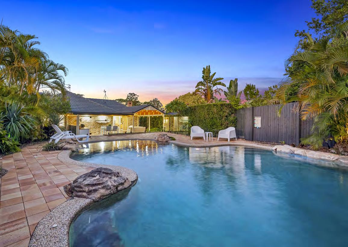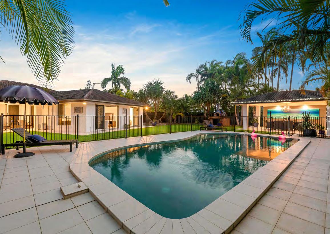 Offered for the ifrst time in over 20 years, this beautifully curated four bedroom, two bathroom home delivers a relaxed Bali inspired lifestyle in one of Benowa' s most tightly held streets Designed to embrace effortless indoor-outdoor living, the expansive rear deck overlooks a sparkling pool, poolside deck and a charming poolside pavilion, creating a private resort-style setting ideal for entertaining or everyday retreat