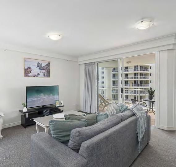 Located on the 6th lfoor, this south-facing apartment captures beautiful ocean glimpses and sweeping city skyline views, while allowing natural light to ifll the space throughout the day Offered fully furnished and featuring ducted air conditioning, the apartment is ready to enjoy immediately as a holiday escape