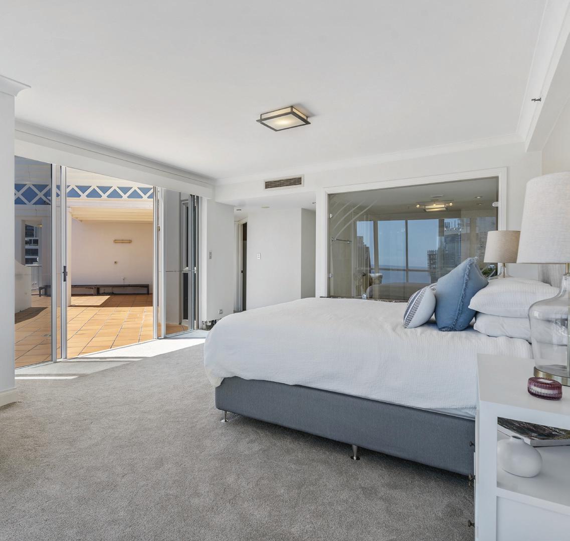 Atop Bel Air in Broadbeach, this two-level penthouse combines generous space, natural light, coastal views and ever yday convenience-making it an exceptional choice for those seeking comfor t, value and lifestyle in one Offering far more room than most modern buildings, the 319m² layout feels open, relaxed and effor tlessly functional Full-height windows draw in ocean, par kland and sk yline views,