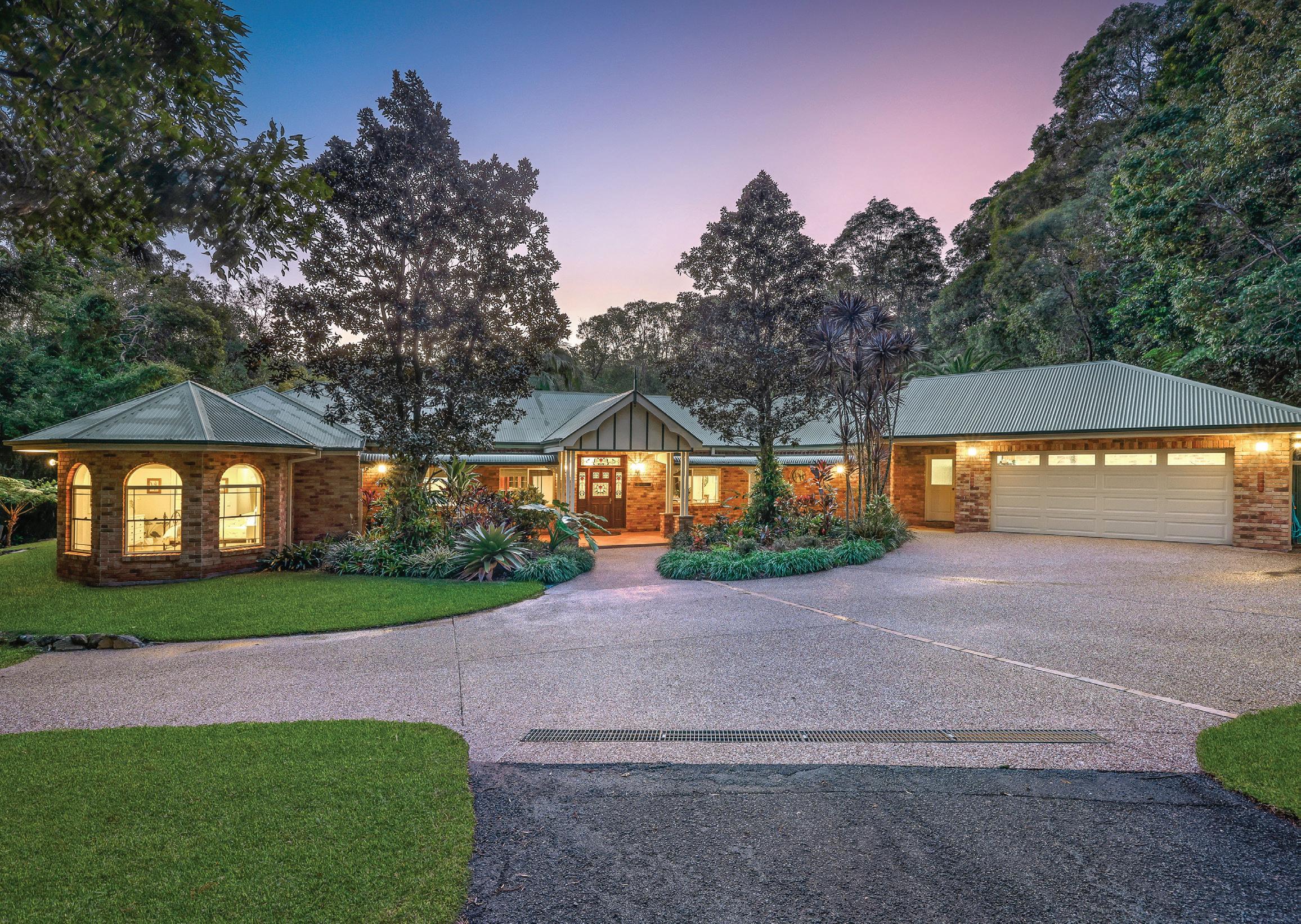 Hidden within an enchanting 3-acre rainforest retreat, Claremont offers absolute serenity just 10 minutes from Currumbin Alley Nestled at the end of a sealed, tree-lined driveway, this Federation-style haven captures views across a tranquil dam to a 14-acre protected greenbelt, blending seclusion with convenience