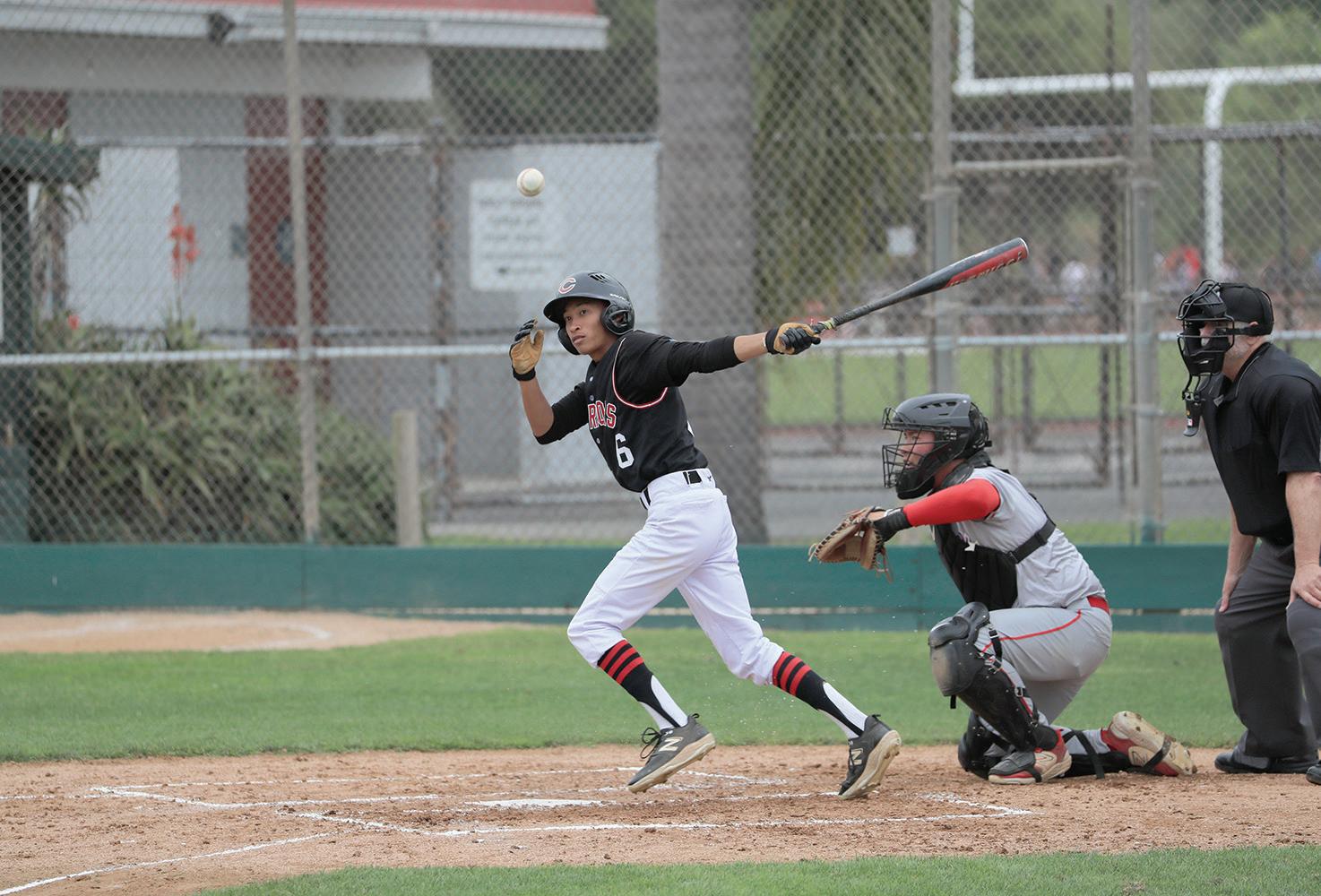 oa orente made contact in Carpinteria’s ome loss against ueneme board before Hueneme shut down the potential rally without giving up any runs.