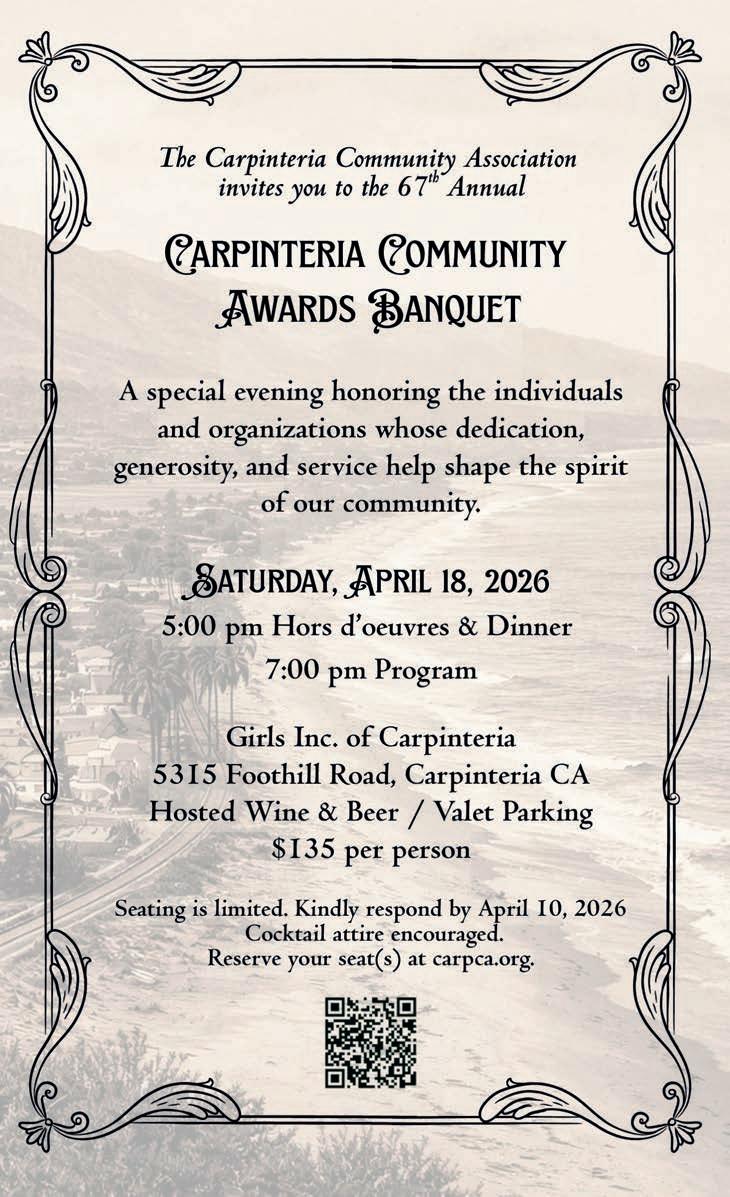 Designed to be kept, shared and revisited, Carpinteria serves as both a collectible community showcase and a trusted guide for locals and visitors exploring everything the valley has to o er.