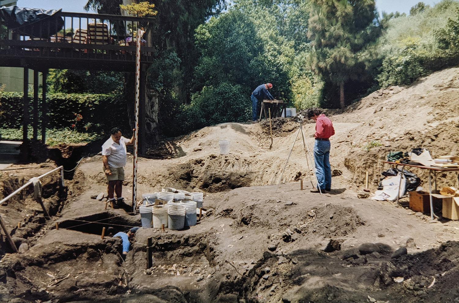 landscapers turned up a pre istoric burial example, koi pond construction turned up an ancient skeleton leading to a formal excavation by the Santa Barbara Natural History Museum.