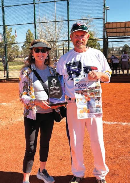 Lisa Rader, left, and Michael Quigley of Carpinteria brought a copy of Coastal View News along for the trip to Saint George, Utah for an extended vacation of hiking, pickleball and softball. Rader and Quigley are pictured holding the championship trophy at the 2026 Spring World Championships, where uigley’s 75 Major had a perfect record of 6-0. “ My team averaged 21 runs per game and had a team batting average for the tournament of .760,” Quigley told Coastal View News.