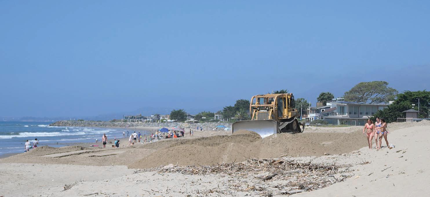 Natural coastal processes are also expected to aid in the beach’s recovery. Seasonal west swells, high tides and the longshore current — bolstered by recent dredging operations at Santa Barbara Harbor — are anticipated to help move sand back onto the beach in the coming weeks.