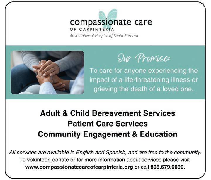 Later in life, they devoted their time to Bellas Artes, a place where children could explore their beautiful culture through art. They often shared stories of the joy they found in working with children and those who ran the program. n her nal days, Jeannette reconnected with that same spirit, hosting one last backyard art gathering lled with creativity, laughter and love. n her honor, instead of sending flow ers that fade, donations may be made to Bellas Artes through the Carpinteria Arts Center. Gifts can be made online at carpinteriaartscenter.org/giveby selecting the “in memory of” option and entering Jeannette Muñoz – Bellas Artes, or by mailing or delivering a check in her honor.