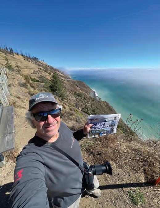 Carpinterian Glenn Dubock brought his copy of Coastal View News along while he wandered around the Sonoma Coast on his electric bike. Dubock told CVN that he was “in search of good light and fine times while off the grid.”