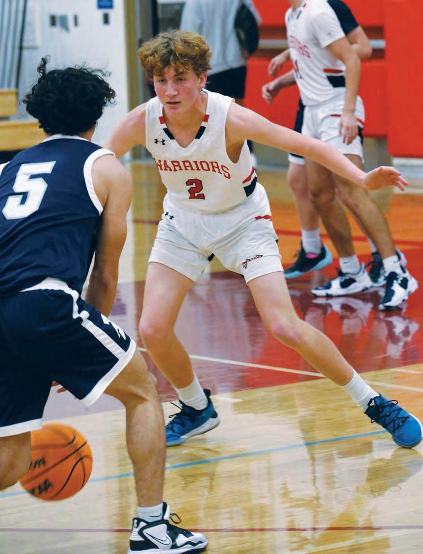 RIGHT, Sophomore Sawyer Kelly and the Warriors defense held Orcutt Academy to 39 points in the win.