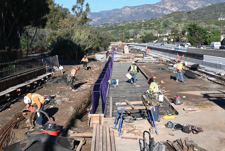 Caltrans construction crews build safety barriers and install storm drains between the Toro and Arroyo Parida Creek bridges.