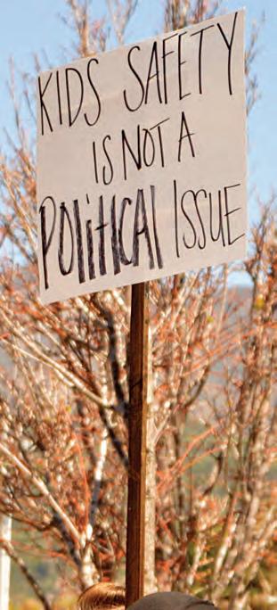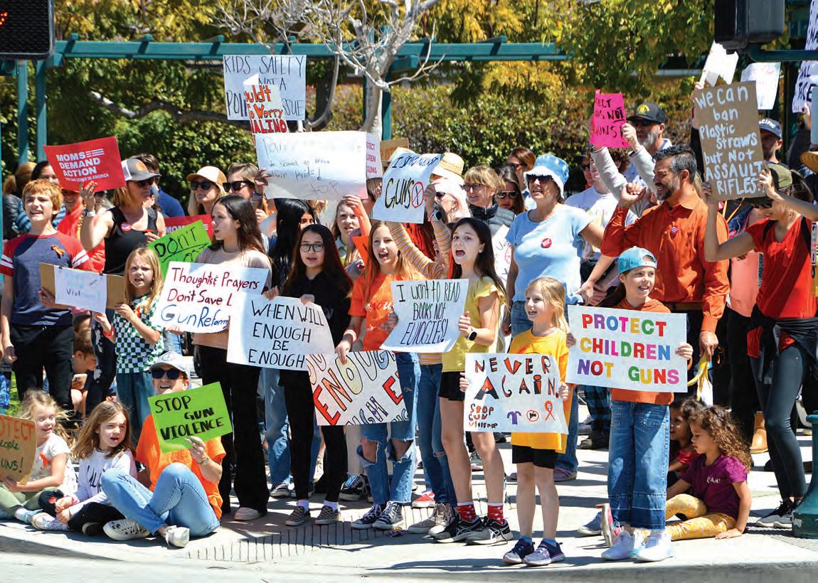 From left, Carpinteria Unified School District sixth graders Carson Weber, Amaya Kuryliw and Lily Nunoz walked out of their classrooms to march down Linden Avenue with their classmates on Wednesday, April 5, to protest gun violence and call on lawmakers to do more to protect students. The walkout was organized by several locals, including the Carpinteria chapter of Moms Demand Action. See more on pages 12 and 13.