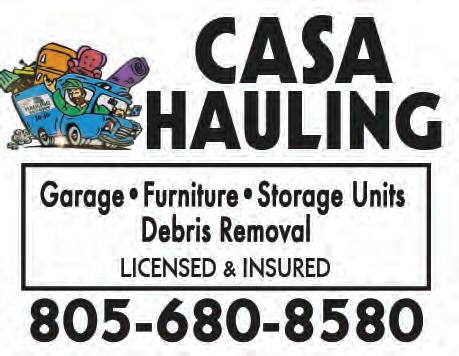 Coastal View News • Tel: (805) 684-4428 Thursday, June 1, 2023 19 What do you like about the overcast weather? It’s quiet with fewer tourists. - Hannah Wade I stay cool. - Anna Akot You don’t get sunburnt. - Aleena Hildebrand Nothing, it’s killing my tomatoes. - Danny Campos It reminds us of Robert Pattinson from “Twilight.” - The Big Bear Bunch LARRY NIMMER MAN ON THE STREET CVN Get your business started here! Contact Kris at kris@coastalview.com MOVING COMPANY AffordAble Mover PUC- LIC & INS DP Mover Since 1986 805-618-1896 805-698-2978 No Job too big or small! FREE Estimates PLUMBING Remodel - Repipe Water, Gas & Drain Servicing 24 hr. Emer. Service - Res./Comm. Lic# 517094 805-684-4919 FIREWOOD Cunningham Tree Service 805-684-3633 OAK FIREWOOD FOR SALE! Split, Seasoned & Ready to Burn $400 Cord/$250 Half Cord DELIVERY AVAILABLE HEATING & AIR SANTA BARBARA HEATING & AIR Lic. #984763 Service Heaters and Fireplaces New Install or Repairs Friendly Local Professional Decade of Experience FREE ESTIMATES The UPS Store Casitas Plaza M-F 8:30-6:30pm • Sat 9-4pm Notary oN Premises PassPort Photos Color aNd B&W CoPies Next day shiPPiNg 805-566-9921 NOTARY/SHIPPING CLASSIC CARS CA$H ON THE SPOT 702-210-7725 • WE COME TO YOU! CLASSIC CARS RV’S • CARS SUV • TRUCKS PRINTER SERVICE Service • Sales • Supplies HP Brother Laser Printer Service 805-566-5996 A-Z Tec SOLUTIONS Larry: Sleeping in, undisturbed by sunshine. PAINTING Interior & Exterior Quality Work Reasonable Rates Lic. #975089 & Insured • Free Estimates John Bylund 805-886-8482 3950 Via Real #153 • Carpinteria HANDYMAN BLOCK • BRICK • TILE • sTuCCO sandsTOnE • FIREPLaCEs dRYWaLL • FLagsTOnE CEmEnT • PaVERs • FEnCEs HOmE REPaIRs & mORE! 27 Years Experience ELIsEO HandYman sERVICEs 805-895-7261 • 805-252-4403 COMPUTER REPAIR SMOG HAULING CONCRETE Diego Carrillo - Owner Call/Text 805-252-4403 SERVING THE 805 • LIC#1099725 Concrete Patios Driveways Walkways BBQ’s Fireplaces Masonry LANDSCAPING Maintenance (Weekly, Monthly or 1x) Irrigation Systems • Concrete & Pavers Tree Trimming & Removal Quality Handyman Services Pressure Washing • Great Rates 805-698-8302 C-27 #1007970 SERVICE Pacific Porcelain refinishing Porcelain & Fiberglass Refinishing & Repair Backed by 60 years of experience 805-562-9292 Showerstalls Countertops Bathtubs • Sinks/Tile Fiberglass Units We Reglaze ~ any ColoR PORCELIAN REFINISHING STEWART’S DE-ROOTING & PLUMBING Full Service Plumber 805-684-0681 10% DISCOUNT Lic. # 375514 Locally Owned PLUMBING ORGANIZATION ORGANiZING CLUTTER FREE IN 2023 8O5-302-2756 Call or Text Today! For a Free Consultation MUSIC RENTALS MUSIC UNLIMITED “We put the FUN in music!” 684-7883 Rentals • Sales • Repairs (805) 607-0789 TheNotaryMobile.com MOBILE NOTARY SERVICE serving California for 25 years MOBILE NOTARTY AVAILABLE 7 DAYS A WEEK WE HAUL EVERYTHING! 805-636-5730 No Job Too Big or Too Small! HAULING PLUMBING FULL SERVICE PLUMBING SPECIAL 10% OFF Clean & Courteous Technicians 24 yrs. in Carpinteria - 805-684-2277 LABOR ONLY WITH AD Lic. # 735657 Water Heaters Sewer & Drain Service