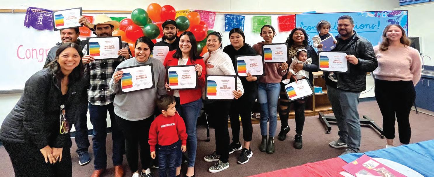 The inaugural My First Years (MFY) class at the Carpinteria Children’s Project (CCP) celebrated the end of the program earlier this month, according to staff member Ismael Paredes Ulloa; from left, Mairani Benitez, Leo Gonzalez, Juvenal Herrera, Rebecca Estrada, Brian Alvarez, Teresa Alvarez, Ariana Pelcastre, Karina Chavez, Yulissa Rosales, Cinthia Bello, Diego Campos and Rosae Maldonado show off their certificates. The class met every Tuesday for six sessions – led by CCP Family Liaisons, Mairani Benitez and Rosae Maldonado – where parents learned how to foster a love of literacy in their children.
