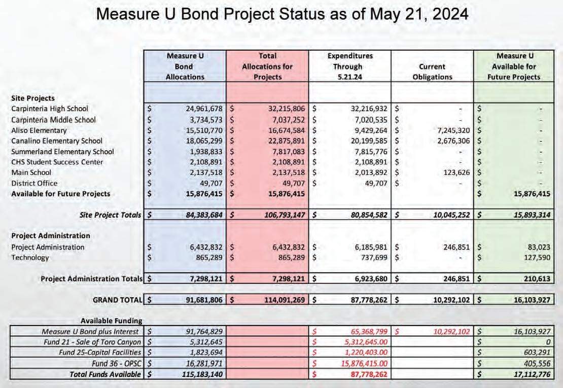 The Carpinteria Unified School District Board of Trustees received a breakdown Measure U funds spent during the 202223 fiscal year, as well as updated Measure U expenditures, at the board’s Tuesday, June 25 meeting.