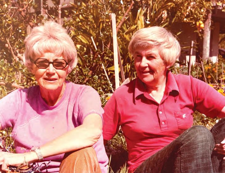 Silvia Dobson, right, and her partner, Liz Truelson, sit in the garden of their pole house on Rincon Point.
