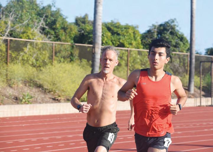 ABOVE, CHS Alum David Celios leads the way in the men’s mile.