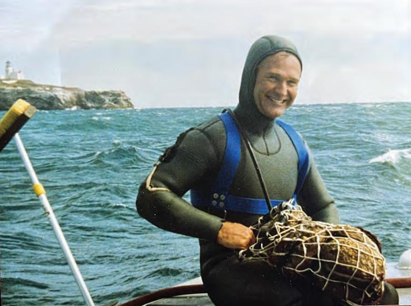 Kevin Sears proudly celebrates a haul of red abalone aboard Matt Moore’s JEM off Point Conception in rough weather, 1994.