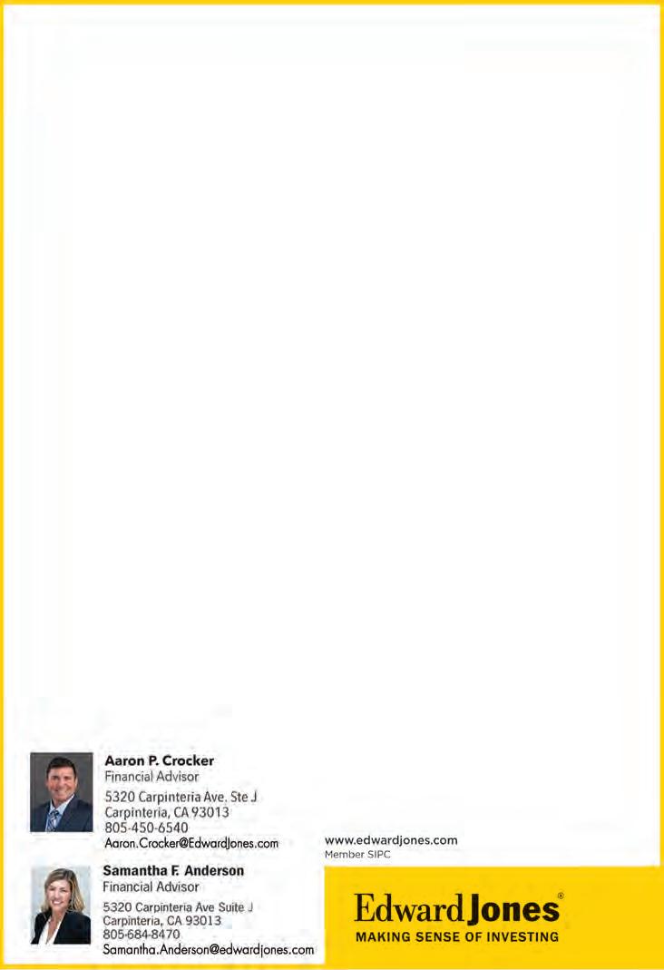 Samantha F. Anderson Financial Advisor 5320 Carpinteria Ave Suite J Carpinteria, CA 93013 805-684-8470 Samantha.Anderson@edwardjones.com edwardjones.com/samantha-anderson