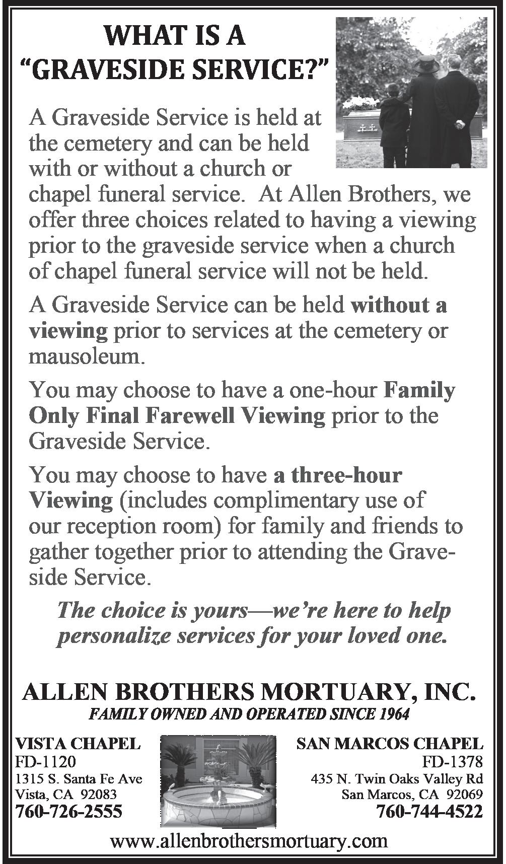 2 T he C oas T N ews - I N la N d e d ITI o N APRIL 14, 2023 Make Every Day Matter At Silvergate San Marcos, neighbors become fast friends, enjoying spectacular activities together every day. Come see your social life blossom in San Marcos’ fi nest retirement community and Friends Are Life’s Great Joy Come Join Us. (760) 744-4484 Independent Living • Assisted Living • Memory Care 1550 Security Place • San Marcos, 92078 • SilvergateRR.com/SM Lic.#374600026 Where Every Day Matters BEAUTIFUL APARTMENTS • ENDLESS ACTIVITIES • UNBELIEVABLE CUISINE • MAINTENANCE-FREE LIVING • AWARD-WINNING CARE