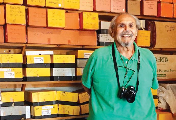 PHOTOGRAPHER Dan Rios pictured with his collection of photo negatives at his Escondido home in 2018, the year he donated the collection to the Cal State San Marcos library’s Special Collections department. Photo by Laurie Brindle