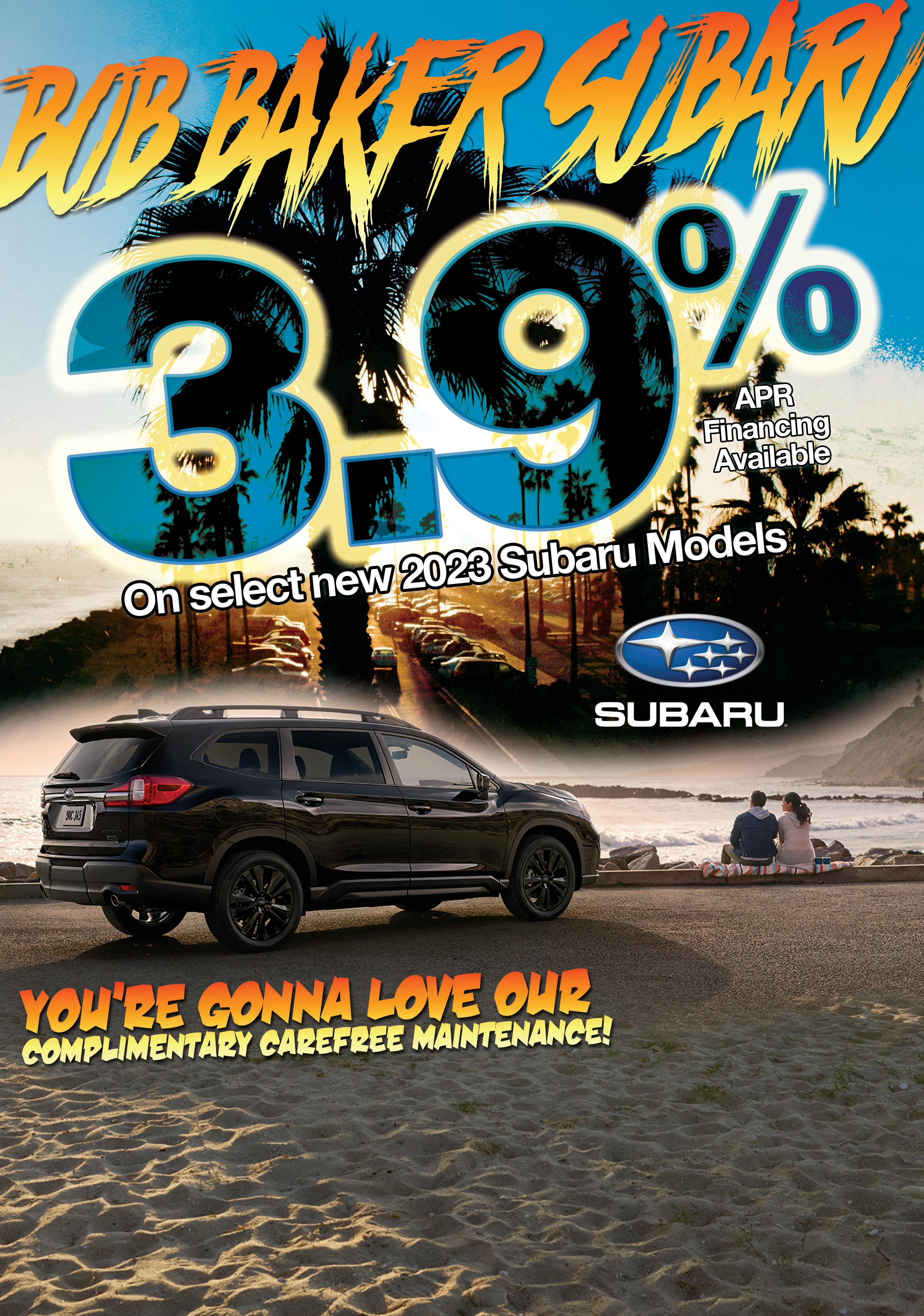 32 T he C oas T N ews APRIL 7, 2023 (760) 438-2200 ** EPA-estimated fuel economy. Actual mileage may vary. Subaru Tribeca, Forester, Impreza & Outback are registered trademarks. All advertised prices exclude government fees and taxes, any finance charges, $80 dealer document processing charge, any electronic filing charge, and any emission testing charge. Expires 4/9/2023. Purchase or lease any new (previously untitled) Subaru and receive a complimentary factory scheduled maintenance plan for 2 years or 24,000 miles (whichever comes first.) See Subaru Added Security Maintenance Plan for intervals, coverages and limitations. Customer must take delivery before 12-31-2023 and reside within the promotional area. At participating dealers only. See dealer for program details and eligibility. C ar Country Drive C ar Country Drive No down payment required. Other rates and payment terms available. Cannot be combined with any other coupon, direct/email offer or promotional offer unless allowed by that offer. Financing for well-qualified applicants only. Length of contract is limited. Subject to credit approval, vehicle insurance approval and vehicle availability. See dealer for details. Must take delivery from retailer stock by May 1, 2023. 5500 Paseo Del Norte Car Country Carlsbad Bob Baker Subaru wants to thank our customers for helping be a part of over 2800 Pet Adoptions with the Rancho Coastal Humane Society!
