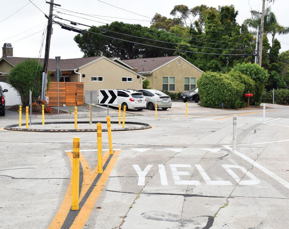 TRAFFIC CIRCLE at the intersection of Eolus Avenue, Andrew Avenue and Hillcrest Drive in Leucadia. Photo by Samantha Nelson