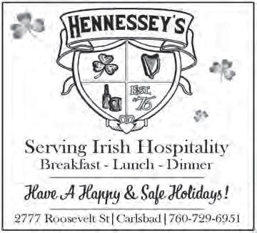 2 T he C oas T N ews DEC. 30, 2022 come in, get hooked 417 carlsbad village dr tel: 760 730 fish (3474) bluewatergrill.com THINK LOCAL. BUY LOCAL. BE LOCAL. Olive Oils and Balsamic Vinegars From Around the World 2922 STATE STREET IN DOWNTOWN CARLSBAD VILLAGE www.humbleoliveoils.com • (760) 994-0132 Open for *Lunch & Dinner Dine-In | Take-Out | Catering Quality Ingredients, Authentic Flavors. Happy Hour Mon-Fri 3-6pm Carlsbad Village | Tamarack Oceanfront | Leucadia Hwy 101 VIGILUCCIS.COM *Hours vary 3060 Roosevelt Street 760.696.3288 barrioglassworks.com @barrioglassworks HOURS: TUE- SAT 10AM-6PM SUN 10AM-5PM MON CLOSED 2:30-7pm 2:30-6pm Two North County Locations Skin Care • Injectables • Cool Sculpting Book An Appointment Today 760-434-8118 300 Carlsbad Village, Dr. • 2023 Vista Way, Vista 10% Off with this ad PAINT YOUR OWN POTTERY & CLAY 2835 Roosevelt St. 949-498-3929 @firedupcarlsbad POSH BRIDES BOUTIQUE features beautiful collections of Wedding Gowns from the World’s most luxurious bridal designers. 858-373-8608 580 Grand Ave, Carlsbad, CA PoshBridesSanDiego.com Stella York Truck Show Oct. 7 - 9 Our menu features California Burrito, Chilaquiles con Pollo, Carnitas Plate and more! Don't forget to try our Caldo de Pollo! 760-696-3117 1040 Carlsbad Village Dr. STE. 105, NOW OPEN IN THE VILLAGE