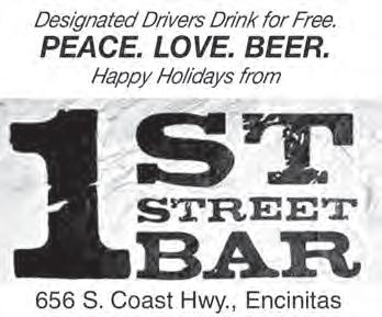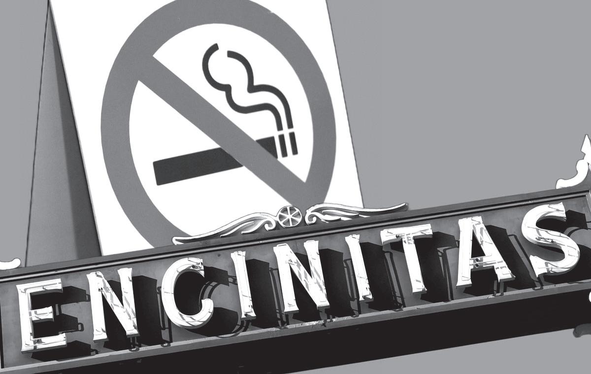 SAN MARCOS -NEWS .com THE VISTA NEWS .com RANCHO SFNEWS .com THE COAST NEWS .com VOL. 36, N0. 52 DEC. 30, 2022 PRSRT STD U.S. POSTAGE PAID ENCINITAS, CA 92024 PERMIT NO. 94 MAKING WAVES IN YOUR NEIGHBORHOOD WHAT’S REALLY HAPPENING IN THE REAL ESTATE MARKET? Ask a Seasoned Pro in North County since 1976 solarprorealtor@gmail.com • (760) 208-3382 Staying in your home? Talk to Me about going solar to increase your home value and SAVE $$ SUSAN “SULLY” SULLIVAN Soul on Fire columnist Green Realtor Powur Solarpreneur DRE#01434989 LOCAL EXPERIENCED • INTUITIVE Dine In, Pickup, Delivery & Catering Delivering all of Carlsbad & Encinitas Relaxed, Casual & Delicious Salads. Pastas.Sandwiches. WE’RE MORE than just GREAT PIZZA (Gluten Free options) Encinitas • 760-942-2222 • Carlsbad • 760-434-2222 • LeucadiaPizza.com Council members next month will consider an ordinance covering most public spaces. 5 Encinitas council weighs smoking ban HAPPY NEW YEAR!