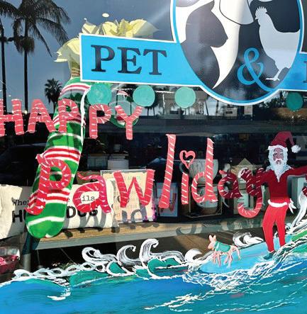 The window display that resonated with the kiddos this year, was none other than Happy Pawlidays at Carlsbad Pet & Feed (2832 State St.) A newcomer to the Holiday Window Decorating Contest, Carlsbad Pet & Feed captured a surfing Santa and his four-legged canine sidekick perfectly for our coastal town.