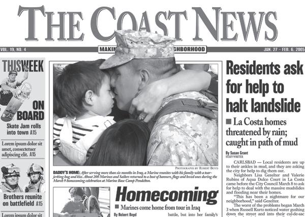 The Coast News is a legally adjudicated newspaper published weekly on Fridays by The Coast News Group. It is qualified to publish notices required by law to be published in a newspaper of general circulation (Case No. 677114).