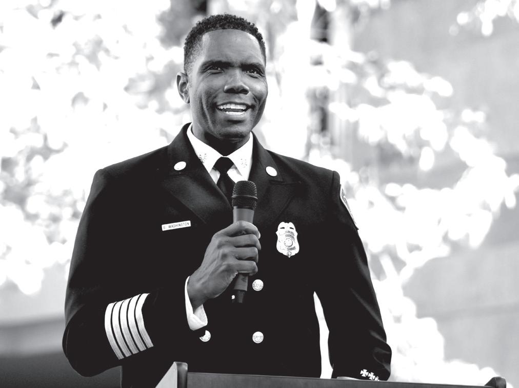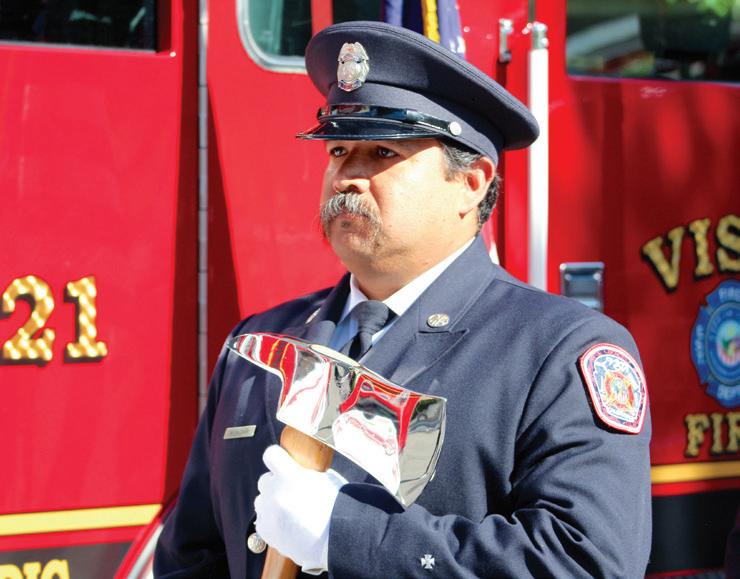 Vista Fire Paramedic Michael Saldana leads the retirement of the colors during a June 20 ceremony at the Vista Civic Center. The Vista Fire Department has acquired six new fire engines and a new ambulance to help enhance response capabilities. Story on 6.