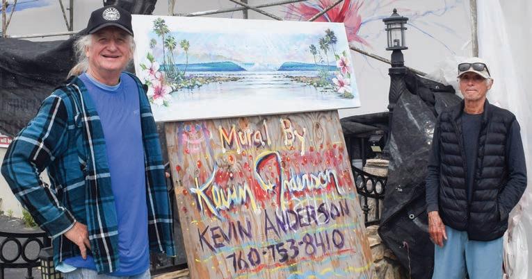 ENCINITAS ARTIST Kevin Anderson, left, is working on a 70-foot mural on the exterior of a new Leucadia building owned by local business owner Jim Shatto. Photo by Kaila Mellos