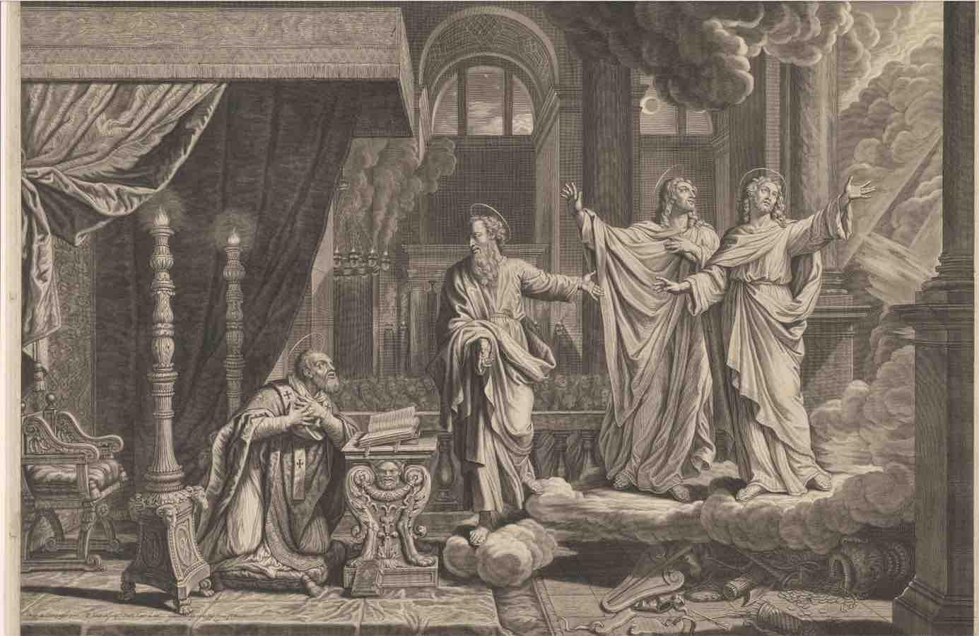 (fig.1) F. Andriot, L’Apparition des saints Gervais et Protais à saint Ambroise, gravure, Amsterdam, Rijksmuseum