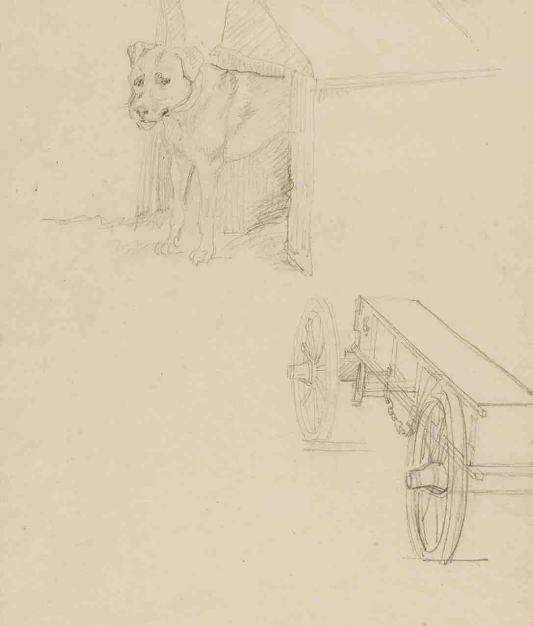 Œuvre comparative : T. Géricault, Chien debout dans sa niche et étude d’un chariot à munitions, graphite, H. 248 ; L. 214 mm, Chicago, Art Institute of Chicago, inv. 1947.35.33 (fig.1)
