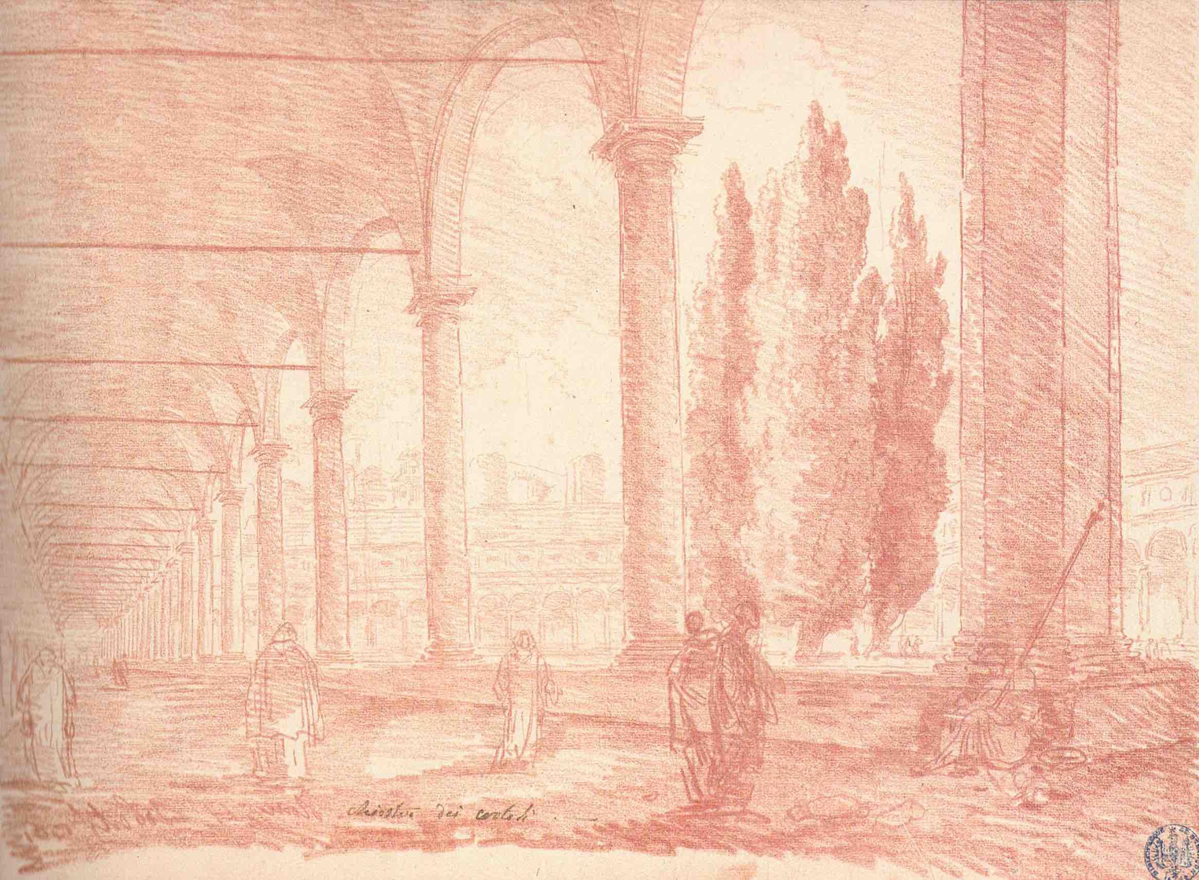 La contre-épreuve de ce dessin, titrée à la plume et encre noire « chiostro dei certosi », de l'ancienne collection PierreAdrien Pâris, est conservée au musée de Besançon (n°1 d'un ancien album de dessins répertorié sous le n° vol. 451, fig.1).